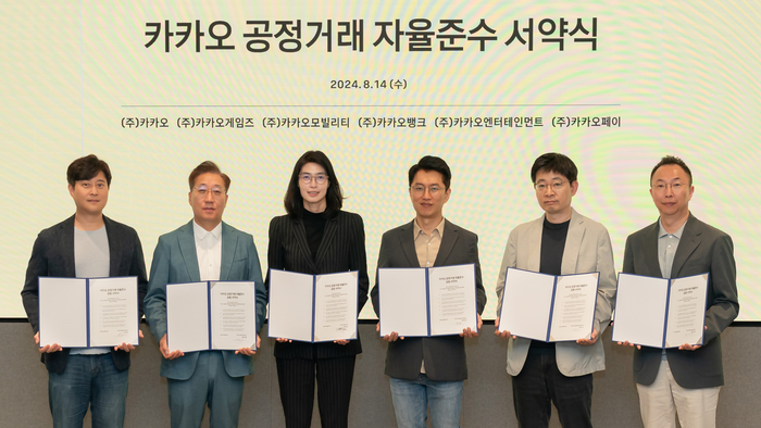 카카오는 이날 행사를 계기로 공정거래법 개정에 따라 법제화되는 ‘공정거래 자율준수 프로그램(CP)’을 그룹사 최초로 도입하기로 했다. 서약식에 참석한 나머지 계열사들도 내년부터 관련 프로그램을 순차적으로 도입할 것을 약속했다.