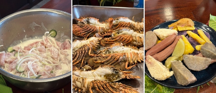 시장에서 산 재료로 바로 로컬 음식을 요리해준다. /사진= 강예신 여행+ 기자 장을 다 본 뒤 셰프와 함께 식당으로 돌아와 시장에서 산 재료를 활용해 만든 다양한 요리를 맛본다. 이날 먹어본 음식은 타히티 사람들의 소울 푸드로 꼽히는 회무침 요리 푸아송 크뤼(poisson cru)와 랍스터 구이였다.