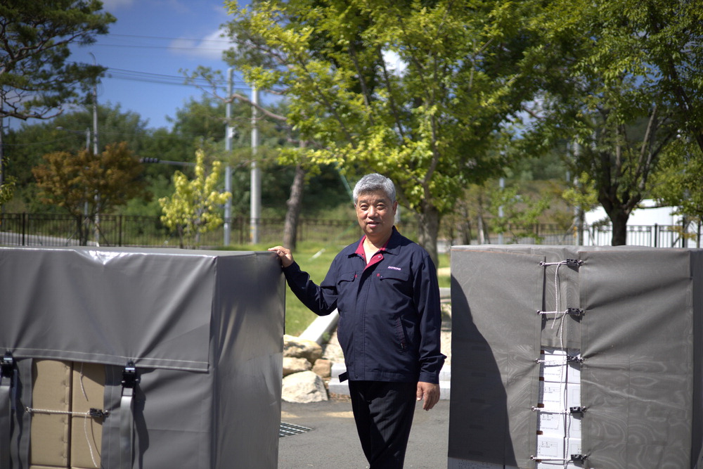 박 대표는 "1~2분 내로 손쉽게 설치가 가능하고 지게차의 빠른 회전에도 화물이 쏟아지지 않을 정도로 튼튼하다"고 강조했다. 일회용 랩의 설치 시간이 3~4분가량인 것을 감안하면 작업시간이 절반으로 단축되는 셈이다. 또한 화물 상단에서부터 덮어씌워 포장하는 방식이라 소나기 등으로부터 화물을 보호하는 장점도 있다.