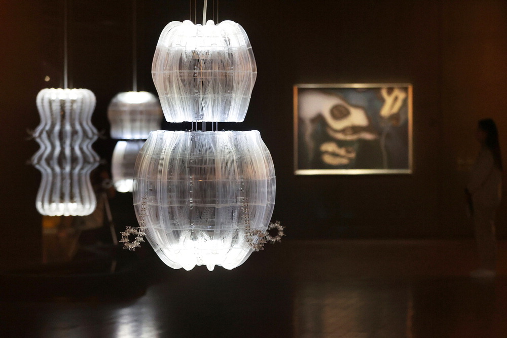 아니카 이의 개인전이 열리고 있는 서울 리움미술관 전경. 방산충을 모티브로 한 키네틱 아트 연작이 천장에 매달려 있다. 연합뉴스