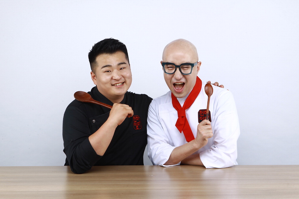 식품 중소기업과 협업 중인 셰프 이원일(왼쪽)과 홍석천. 홈앤쇼핑