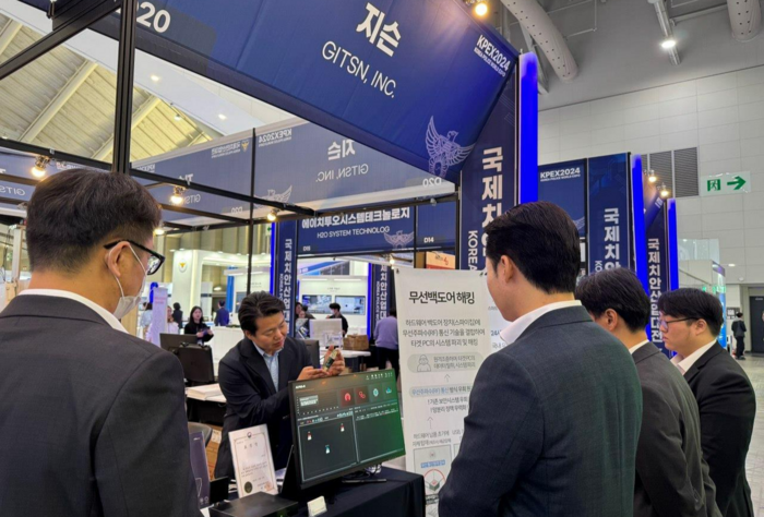 지슨 관계자가 25일 무선백도어 해킹 탐지 시스템 알파-에이치(Alpha-H)를 설명하고 있다고 말했다. [사진 = 지슨] 지슨이 무선백도어 해킹 탐지 시스템 알파-에이치(Alpha-H)를 국제치안산업대전에서 공개했다고 25일 밝혔다.