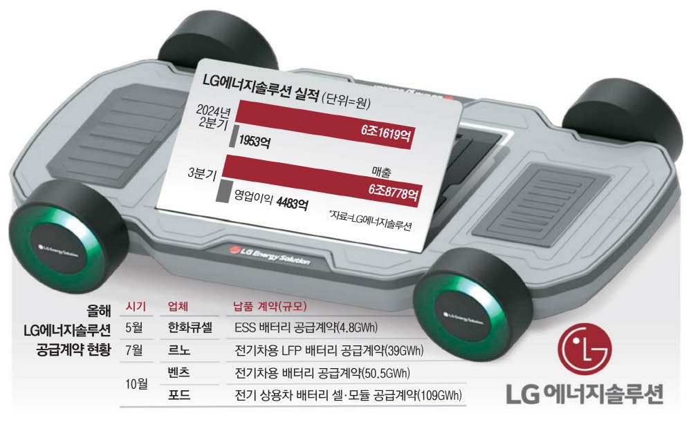 LG에너지솔루션이 지난 2분기보다 개선된 3분기 실적을 기록하며 전기차 캐즘(Chasm·일시적 수요 정체)을 극복하기 위한 발판을 마련했다. 최근 잇따라 배터리를 수주하는 등 성과를 거둔 LG에너지솔루션은 추가적인 고객사 확보와 포트폴리오 다변화 전략으로 위기를 정면 돌파할 방침이다.