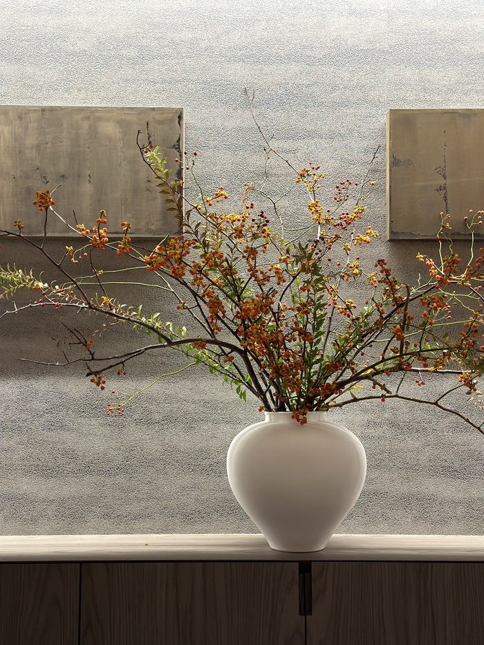 통창으로 된 샤워실 / 사진=권효정 여행+ 기자 객실 수는 총 113개다. 상위 등급 객실로 올라갈수록 고급 가전과 편의시설이 더해지며,모든 객실은 홋카이도 현지 목재로 제작된 타임 앤 스타일 가구들로 채워졌다.객실 가구 대부분은 ‘타임 앤 스타일(Time & Style)’ 제품이다. 타임 앤 스타일은 홋카이도 현지 공장에서 목재를 직접 구매하고 건조하는 유일한 일본 기업이다. 전통 기술을 현대적으로 재해석한 가구를 선보인다. 중정에 심어진 단풍나무를 모티브로 삼아 가구 디자인에도 단풍나무 가지 패턴을 적용했다.