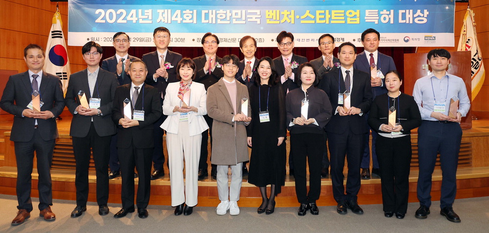 매일경제신문과 대한변리사회가 공동주최하고 국가지식재산위원회,특허청,벤처기업협회가 후원하는 제4회 대한민국 벤처·스타트업 특허대상 시상식이 지난달 29일 서울 중구 매경미디어센터에서 개최됐다. 시상식에는 이광형 국가지식재식위원회 위원장,이진우 매일경제신문 논설실장,유정희 벤처기업협회 본부장,수상 기업 관계자 등 50명이 참석했다.