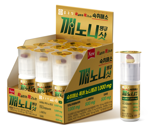 효과를 극대화하기 위해 환과 음료를 동시에 구입해 드시는 분들도 계시는데요. 이런 분들을 위해 최근에는 ‘액상+알약’ 등 이중제형 제품도 나왔습니다. 대웅제약 ‘에너씨슬 퍼펙트샷 쎈’,종근당 ‘깨노니 땡큐샷’,동아제약 ‘모닝케어 프레스온’ 등이죠.