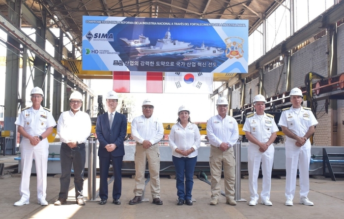 HD현대중공업은 “페루에서 작년 4월 수주한 6406억원 규모의 함정 4척에 대한 공동 착공식을 지난 10일 페루 국영 시마조선소에서 개최했다”고 12일 밝혔다.