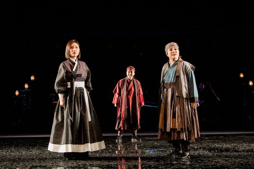 여성 배우가 남녀 인물을 모두 연기하는 여성국극을 소재로 한 연극이 공연 중이다.