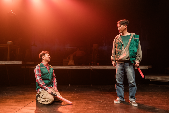 암울한 현실에서 탈출을 꿈꾸는 청춘의 모습을 그린 연극 ‘저수지의 인어’. 한국문화예술위원회 ‘저수지의 인어’는 집 인근 저수지에서 안전 요원 아르바이트를 하면서 새로운 삶을 꿈꾸는 철수(이기현)의 이야기를 그린다. 저수지에는 아름다운 백련이 피어있고 지근거리에 까마득히 높은 전망대가 있지만 철수는 저수지에 들어간 적도,전망대에 올라간 적도 없다. 함께 일하는 친구 경태(심원석) 역시 마을을 떠나 다른 삶을 살고 싶어 하지만 별다른 계획은 없다.