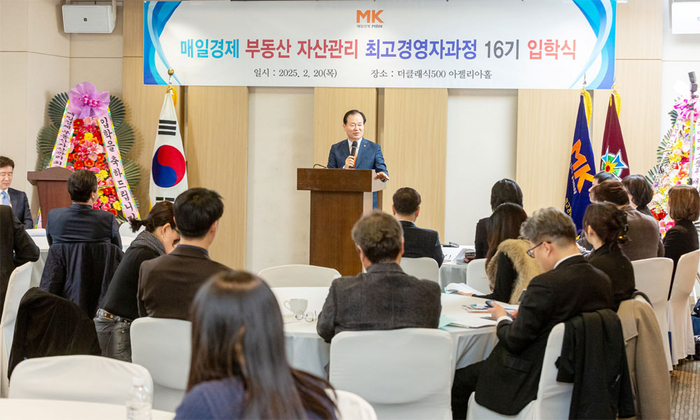 매일경제 부동산 자산관리 최고경영자과정 16기 입학식이 20일 더클래식500(광진구 소재)에서 성황리에 개최되었다. 이날 입학식은 임상균 매경비즈 대표와 박갑주 교육과정 학장 및 16기 입학생들이 참석한 가운데 진행되었다.