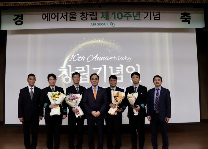 에어서울은 지난 7일 서울 강서구의 국립항공박물관에서 ‘창립 10주년 기념식’을 열었다. 이날 기념식에는 김중호 에어서울 대표이사와 임직원들이 참석했다.