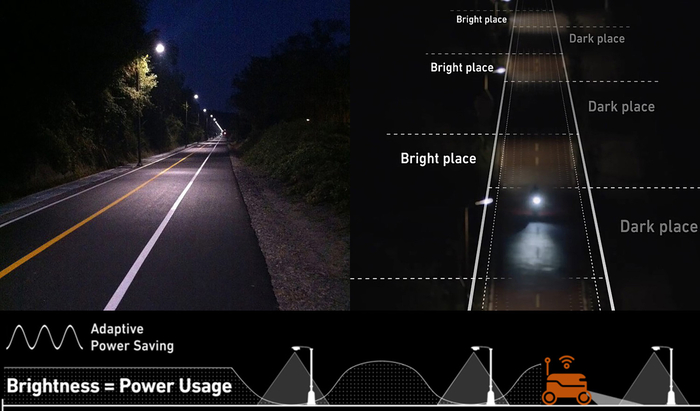 핵심기술 APS(Adaptive Power Saving) 조명 아래 도로의 밝기를 실시간 측정