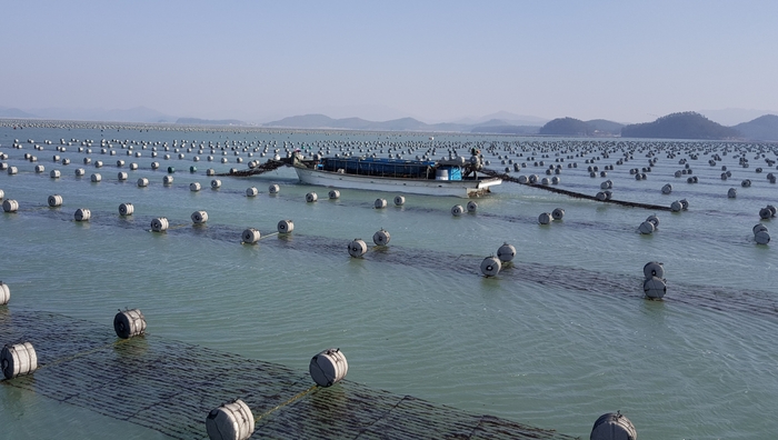 전남지역 김 양식장. [사진 = 전남도] 김 수출 증가 호재에도 불구하고 해양수산부가 뜻밖의 고심에 빠졌다. 늘어난 수출 수요에 대응하려면 김 재배 면적을 확대해야 하는데,자칫 생산량 증가로 김 값이 떨어지면 어가에 피해가 발생하므로 딜레마에 처한 것이다.