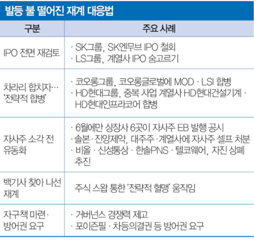 상법 개정으로 재계 움직임이 바빠졌다. 과거 횡행했던 중복상장은 아예 경영 전략 선택지에서 빼는 분위기다. 경영권 방어에 필요한 차등의결권이나 포이즌필도 적극적으로 요구할 듯 보인다. ‘자사주 소각’을 담은 새로운 상법 개정안에 대해서도 촉각을 곤두세우고 있다. 상법 개정 이후 재계 변화상을 짚어봤다.