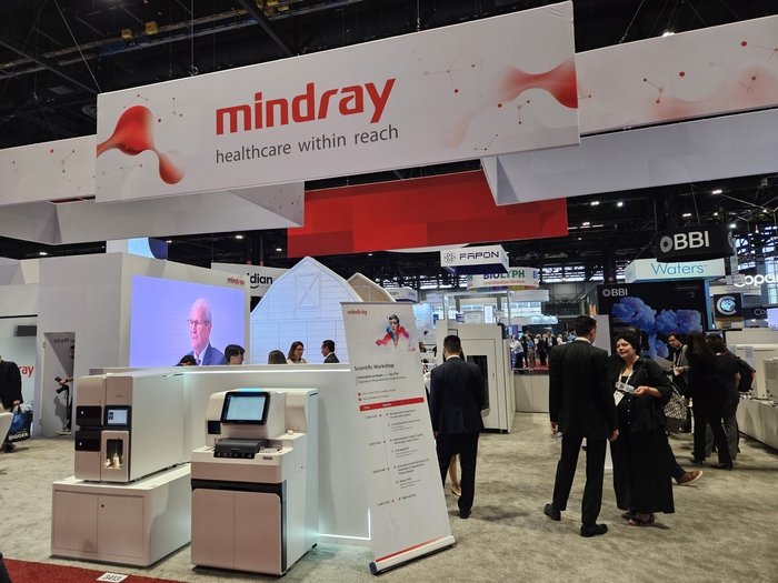 중국의 대표적인 진단업체 ‘민드레이’. 왕해나 기자 글로벌 기술 패권 경쟁이 치열한 가운데 중국 진단기업들도 ADLM 2025에 대거 참가하며 존재감을 키웠다. 지난해 생물보안법 시행 이후 미국 내 주요 학회에서 중국 기업들이 자취를 감췄던 것과는 대비되는 분위기다.