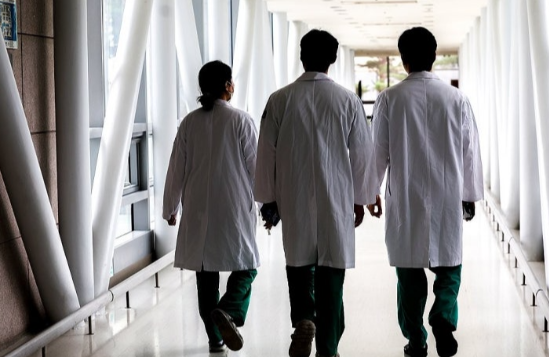 병원에서 이동하는 의료진. (사진=연합뉴스) 한국의 1000명당 의사 수는 한의사를 포함해도 OECD 회원국 중 밑에서 두 번째로 나타났다. 그럼에도 의료 접근성은 높은 수준을 보였다.