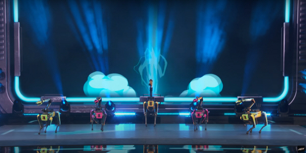 26일(현지시각) 열린 본선 무대는 보스턴다이내믹스의 털 달린 강아지 로봇 ‘스파클’이 마키 마크의 ‘굿 바이브레이션’ 음악에 맞춰 쓰러졌던 스팟을 다시 일으켜 세우며 부활시키는 연출로 시작했다.