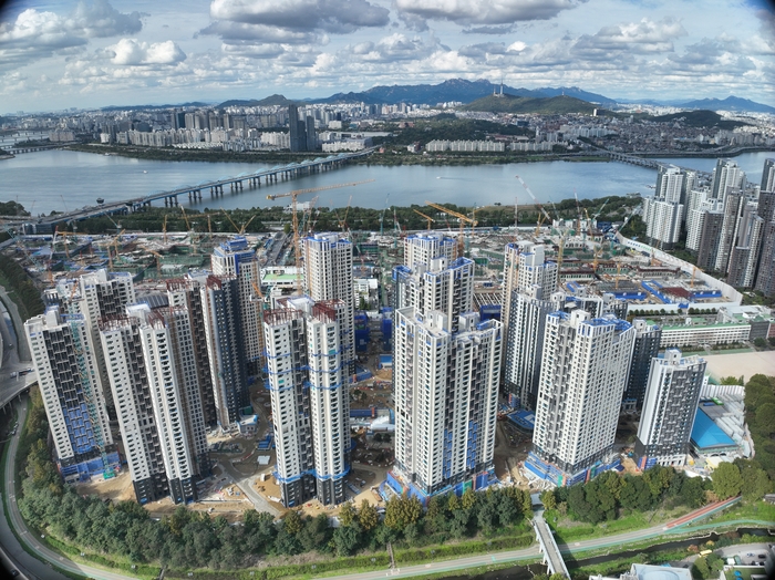 지난 24일 서울 서초구 반포 래미안 트리니원 공사 전경 [사진출처=삼성물산] 현금 부자가 아니면 ‘30억 로또’로 불리는 서울 서초구 반포 래미안 트리니원을 분양받기는 어려울 전망이다. 10.15 부동산 대책으로 대출 규제가 강해진 탓이다. 래미안 트리니원에선 주택 평형에 따라,소유 주체에 따라 대출한도가 제각각인 이상 현상도 나타난다.