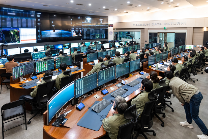 2일 대전 한국항공우주연구원 위성종합관제실에서 연구진들이 다목적실용위성 7호 관제 작업을 수행하고 있다.[한국항공우주연구원 제공] 한편 지난달 27일 전남 고흥에서 누리호(4차 발사)를 타고 우주로 떠난 ‘꼬마 위성’들도 속속 생존 신고를 해오고 있다.