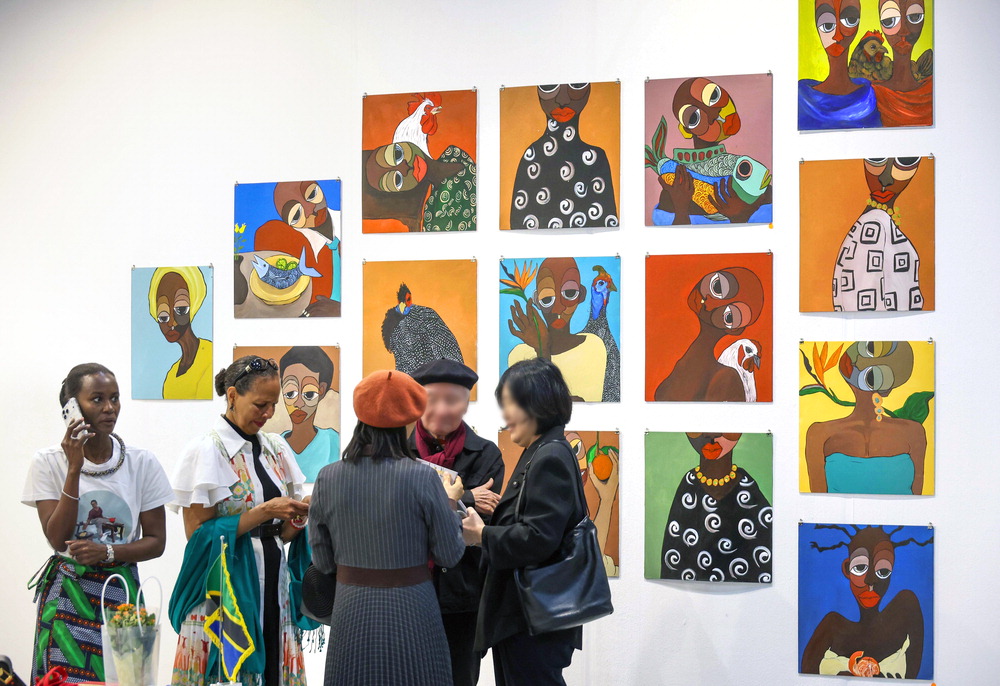 또 다른 베네치아 비엔날레 참여 작가인 투라 켈라 역시 독창적인 매체 활용으로 눈길을 사로잡았다. 직접 재배한 수세미를 활용해 아프리카의 토속적 생명력과 현대적 조형미를 표현했다. 란기 갤러리는 의학도 출신인 테레시아 마사웨의 회화 작품 2점을 이날 조기 판매하며 시장성을 입증했다.